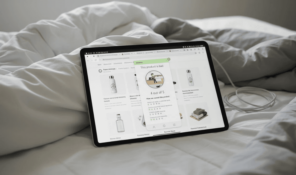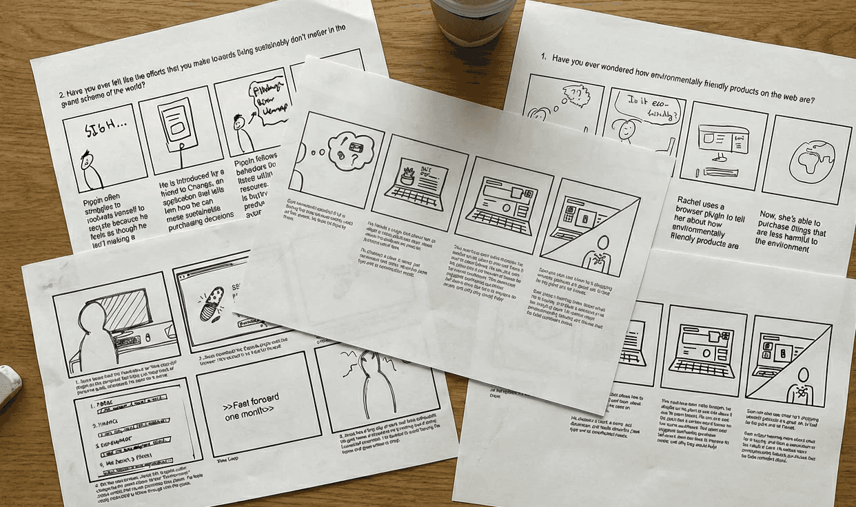A combination of using both a plug-in and an advertisement to persuade shoppers to buy sustainably. By changing user behavior with persuasive design theory, we aimed to increase awareness of sustainability issues and the product itself.