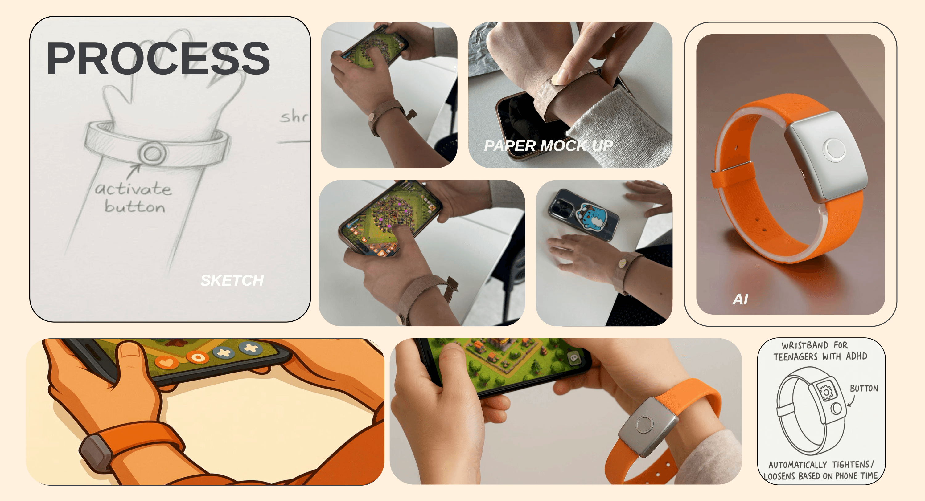 Time perception while gaming is a problem for teenagers with ADHD, often lacking solutions with empirical evidence. By performing a Design Sprint 2.0, a wearable prototype was built to increase time awareness through subtle, haptic cues.