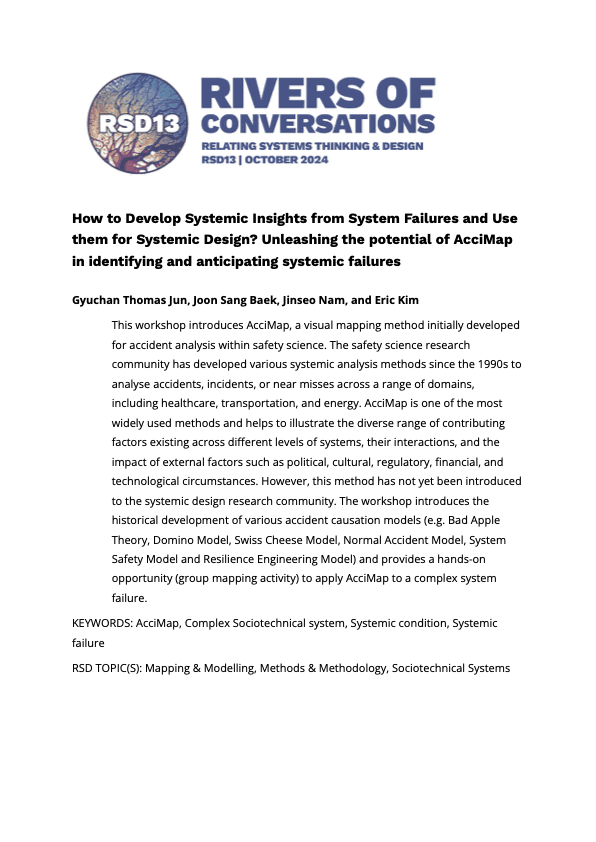 AcciMap, a visual mapping method, is often used in safety science research – but has not been introduced to the systemic design research community. This workshop was coordinated to test how effective this method can be and provide a hands-on experience for systemic designers.